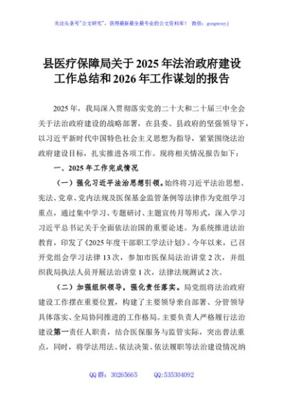 / 县医疗保障局关于2025年法治政府建设工作总结和2026年工作谋划的报告