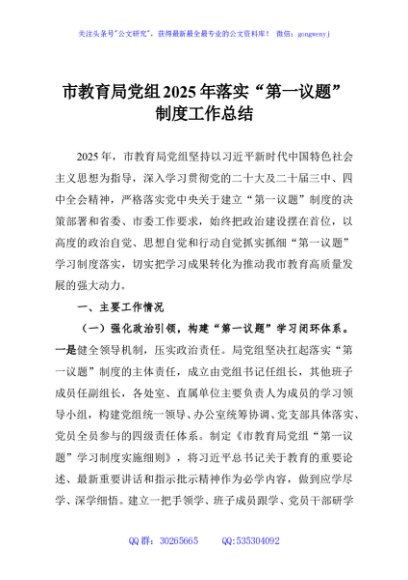 / 市教育局党组2025年落实“第一议题”制度工作总结