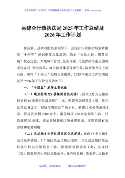 / 县综合行政执法局2025年工作总结及2026年工作计划