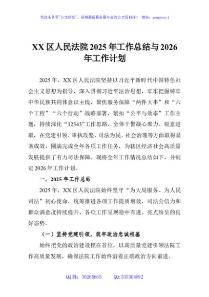 / XX区人民法院2025年工作总结与2026年工作计划