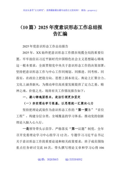 / (10篇)2025年度意识形态工作总结报告汇编