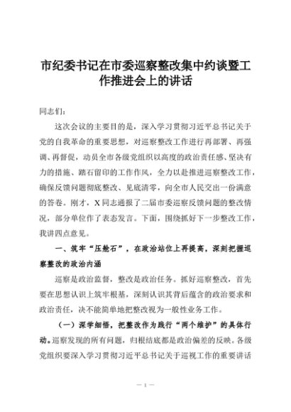 / 市纪委书记在市委巡察整改集中约谈暨工作推进会上的讲话