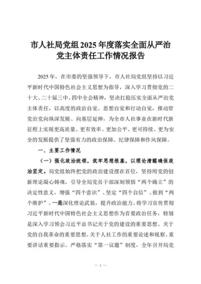 / 市人社局党组2025年度落实全面从严治党主体责任工作情况报告