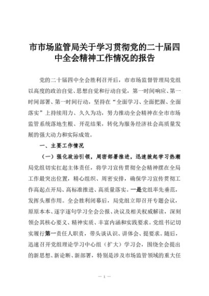 / 市市场监管局关于学习贯彻党的二十届四中全会精神工作情况的报告
