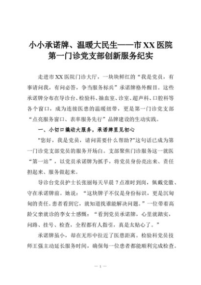 / 小小承诺牌、温暖大民生——市XX医院第一门诊党支部创新服务纪实