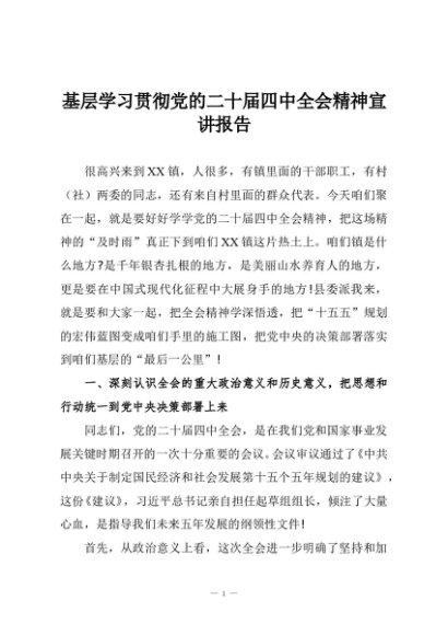 基层学习贯彻党的二十届四中全会精神宣讲报告