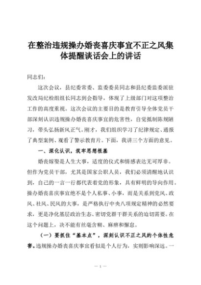 / 在整治违规操办婚丧喜庆事宜不正之风集体提醒谈话会上的讲话