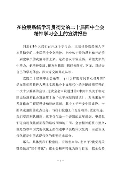 / 在检察系统学习贯彻党的二十届四中全会精神学习会上的宣讲报告
