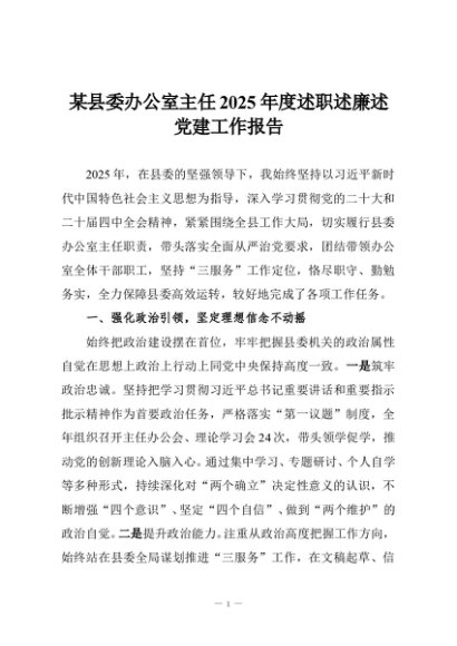 / 某县委办公室主任2025年度述职述廉述党建工作报告