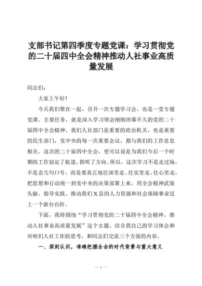 / 支部书记第四季度专题党课:学习贯彻党的二十届四中全会精神推动人社事业高质量发展