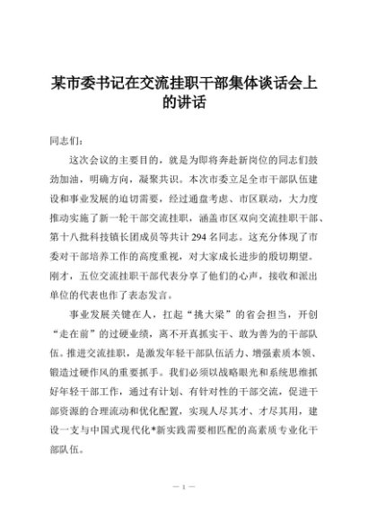 / 某市委书记在交流挂职干部集体谈话会上的讲话