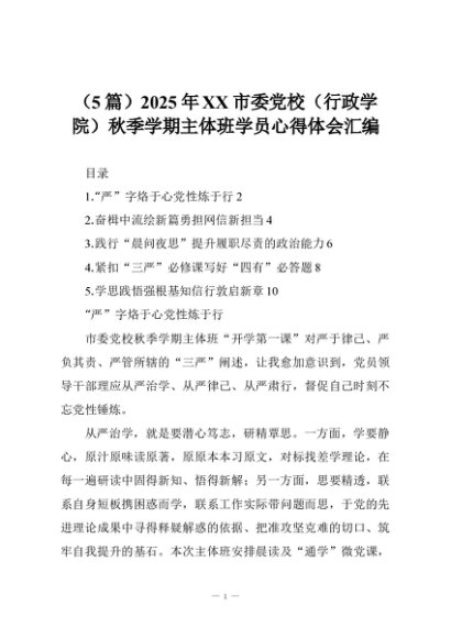 / (5篇)2025年XX市委党校(行政学院)秋季学期主体班学员心得体会汇编