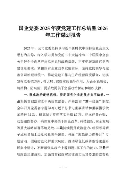 / 国企党委2025年度党建工作总结暨2026年工作谋划报告