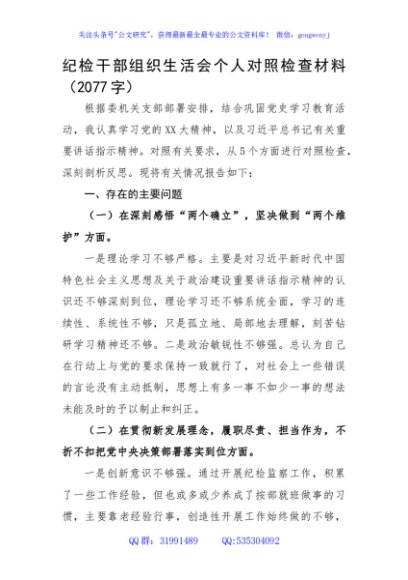 / 纪检干部民主(组织)生活会个人对照检查材料