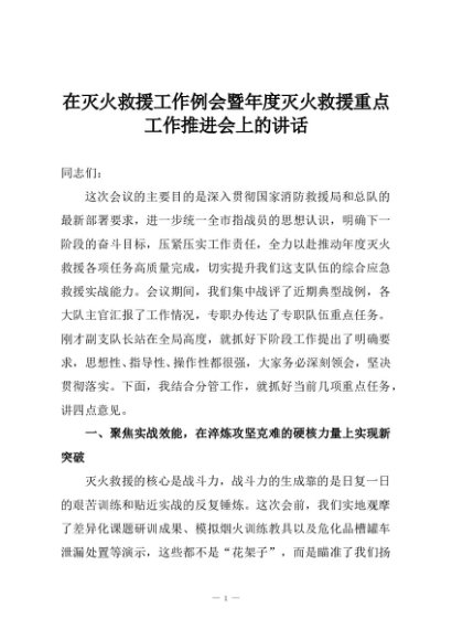 / 在灭火救援工作例会暨年度灭火救援重点工作推进会上的讲话