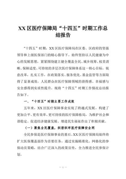 / XX区医疗保障局“十四五”时期工作总结报告