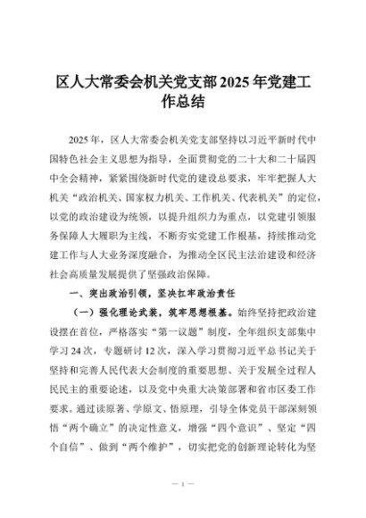 / 区人大常委会机关党支部2025年党建工作总结