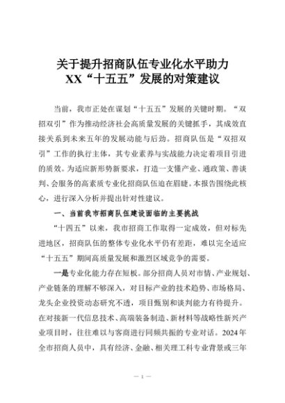 / 关于提升招商队伍专业化水平助力XX“十五五”发展的对策建议