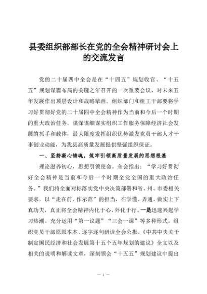 / 县委组织部部长在党的全会精神研讨会上的交流发言