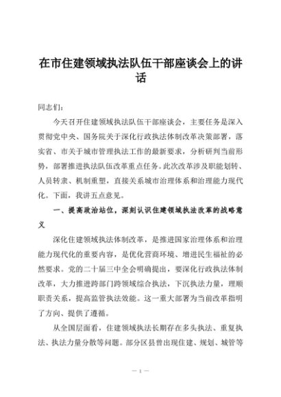 / 在市住建领域执法队伍干部座谈会上的讲话