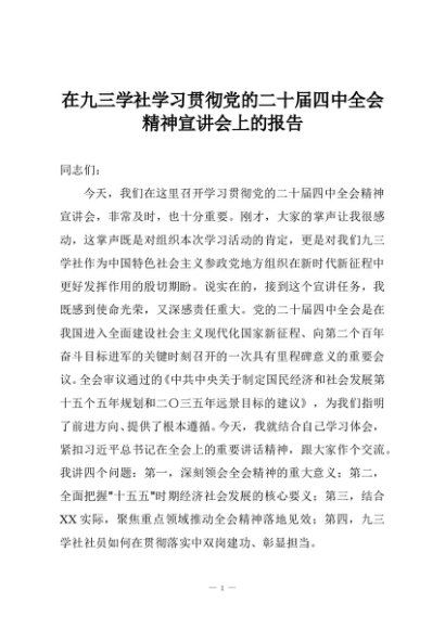 / 在九三学社学习贯彻党的二十届四中全会精神宣讲会上的报告