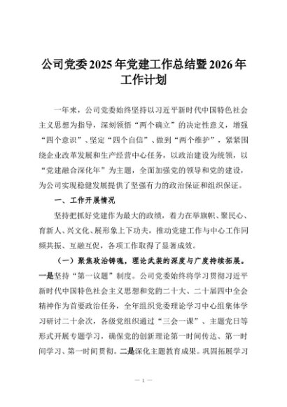 / 公司党委2025年党建工作总结暨2026年工作计划