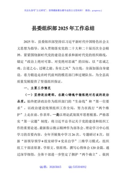 / 县委组织部2025年工作总结