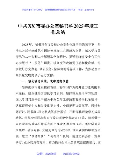 / 中共XX市委办公室秘书科2025年度工作总结