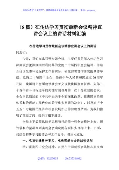(8篇)在传达学习贯彻最新会议精神宣讲会议上的讲话材料汇编