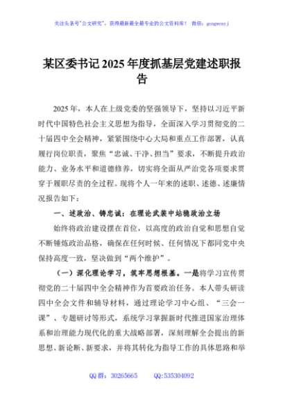/ 某区委书记2025年度抓基层党建述职报告