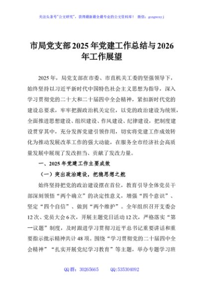 / 市局党支部2025年党建工作总结与2026年工作展望