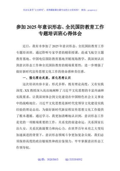 / 参加2025年意识形态、全民国防教育工作专题培训班心得体会