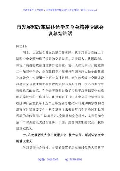 / 市发展和改革局传达学习全会精神专题会议总结讲话