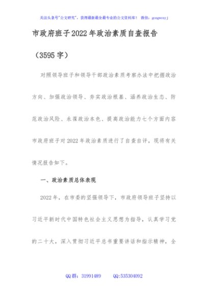 / 市政府班子2022年政治素质自查报告