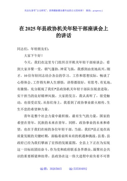 / 在2025年县政协机关年轻干部座谈会上的讲话