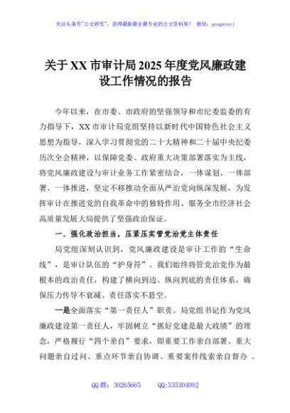 / 关于XX市审计局2025年度党风廉政建设工作情况的报告