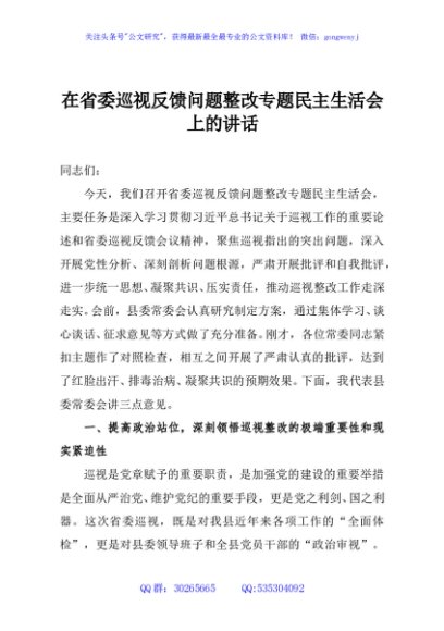 / 在省委巡视反馈问题整改专题民主生活会上的讲话