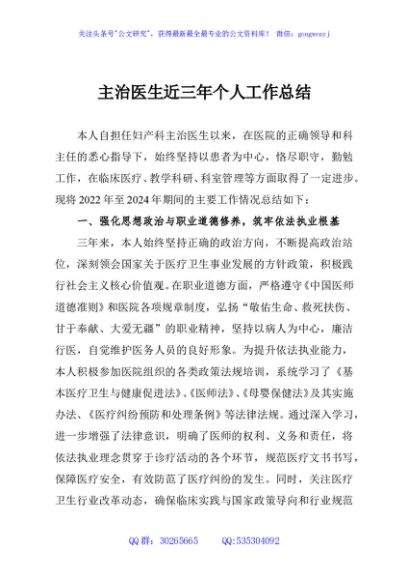 / 主治医生近三年个人工作总结