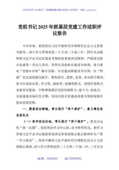 / 党组书记2025年抓基层党建工作述职评议报告