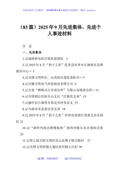 / (83篇)2025年9月先进集体、先进个人事迹材料
