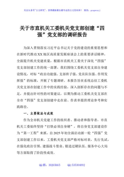 / 关于市直机关工委机关党支部创建“四强”党支部的调研报告