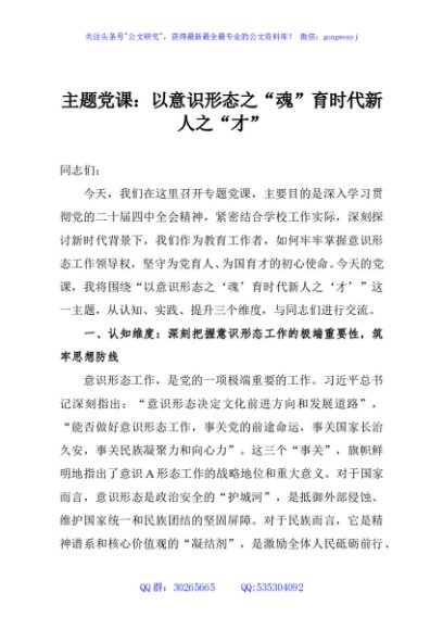 / 主题党课:以意识形态之“魂”育时代新人之“才”