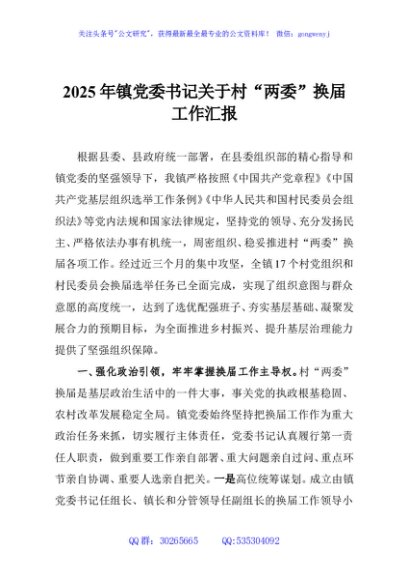 / 2025年镇党委书记关于村“两委”换届工作汇报