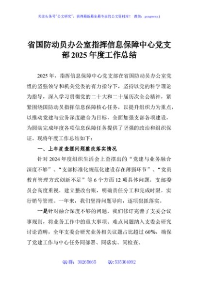 / 省国防动员办公室指挥信息保障中心党支部2025年度工作总结