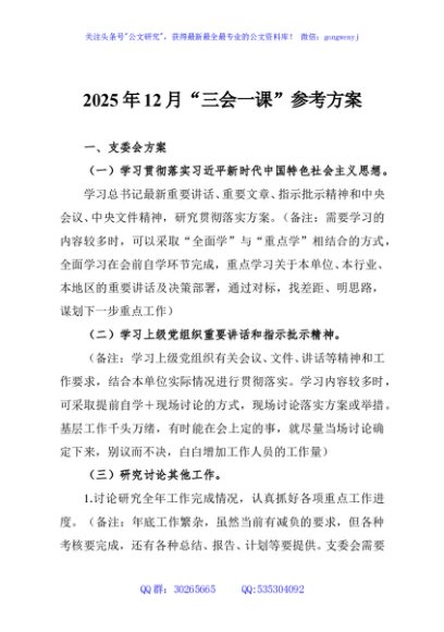 / 2025年12月“三会一课”参考方案