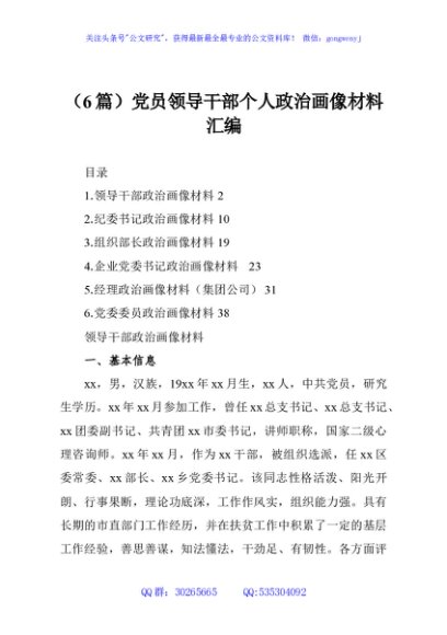 / (6篇)党员领导干部个人政治画像材料汇编