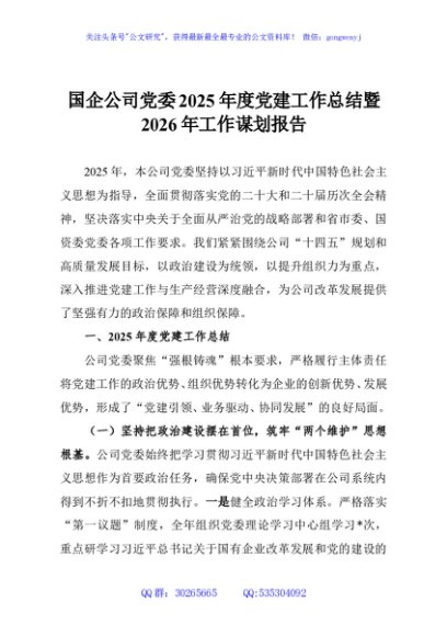 / 国企公司党委2025年度党建工作总结暨2026年工作谋划报告
