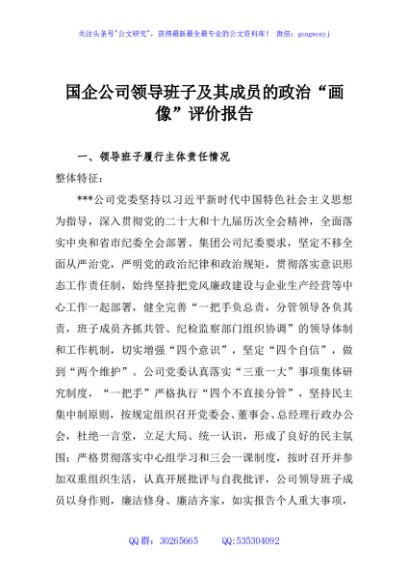 / 国企公司领导班子及其成员的政治“画像”评价报告