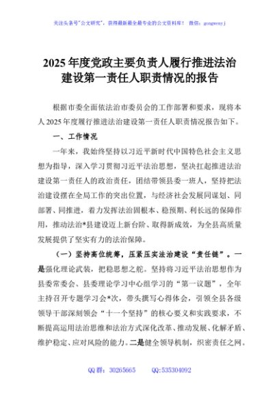 / 2025年度党政主要负责人履行推进法治建设第一责任人职责情况的报告