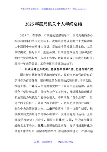 / 2025年度局机关个人年终总结